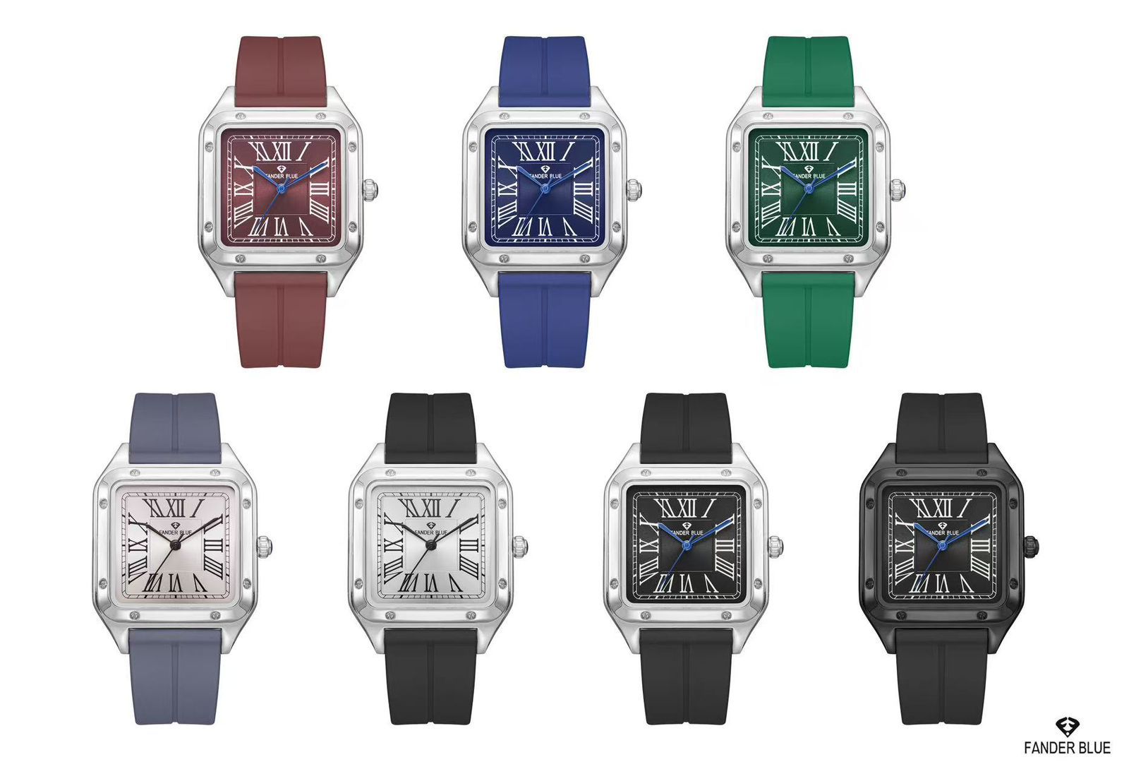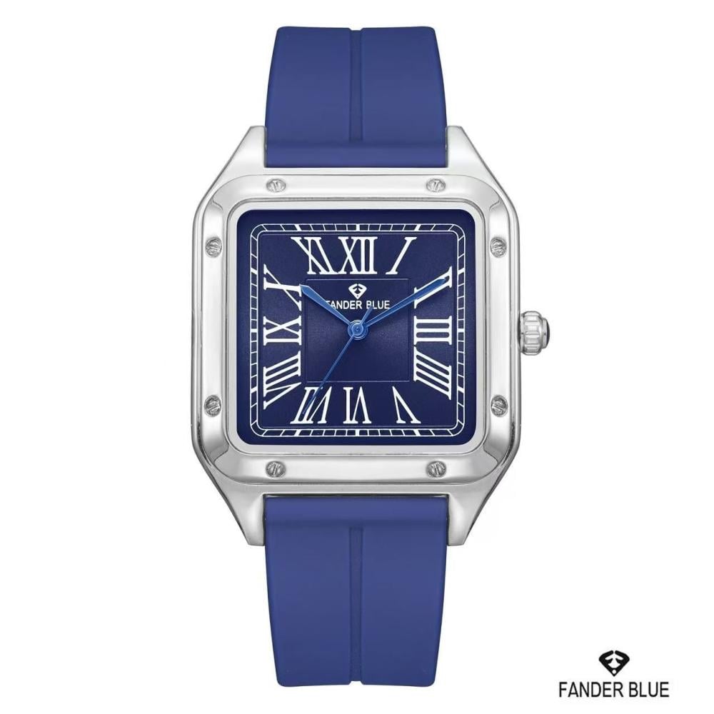 ساعة FANDER BLUE هنا تقدم معادلة نادرة: تصميم مربّع فاخر بلمسة كلاسيكية (أرقام رومانية وميناء مرتب) مع سير ربل عملي يناسب الإيقاع اليومي. النتيجة؟ ساعة تعطيك حضورًا راقيًا كأنها “Dress Watch”، لكن براحة وثبات “Daily Watch” تلبسها طوال اليوم بدون قلق.