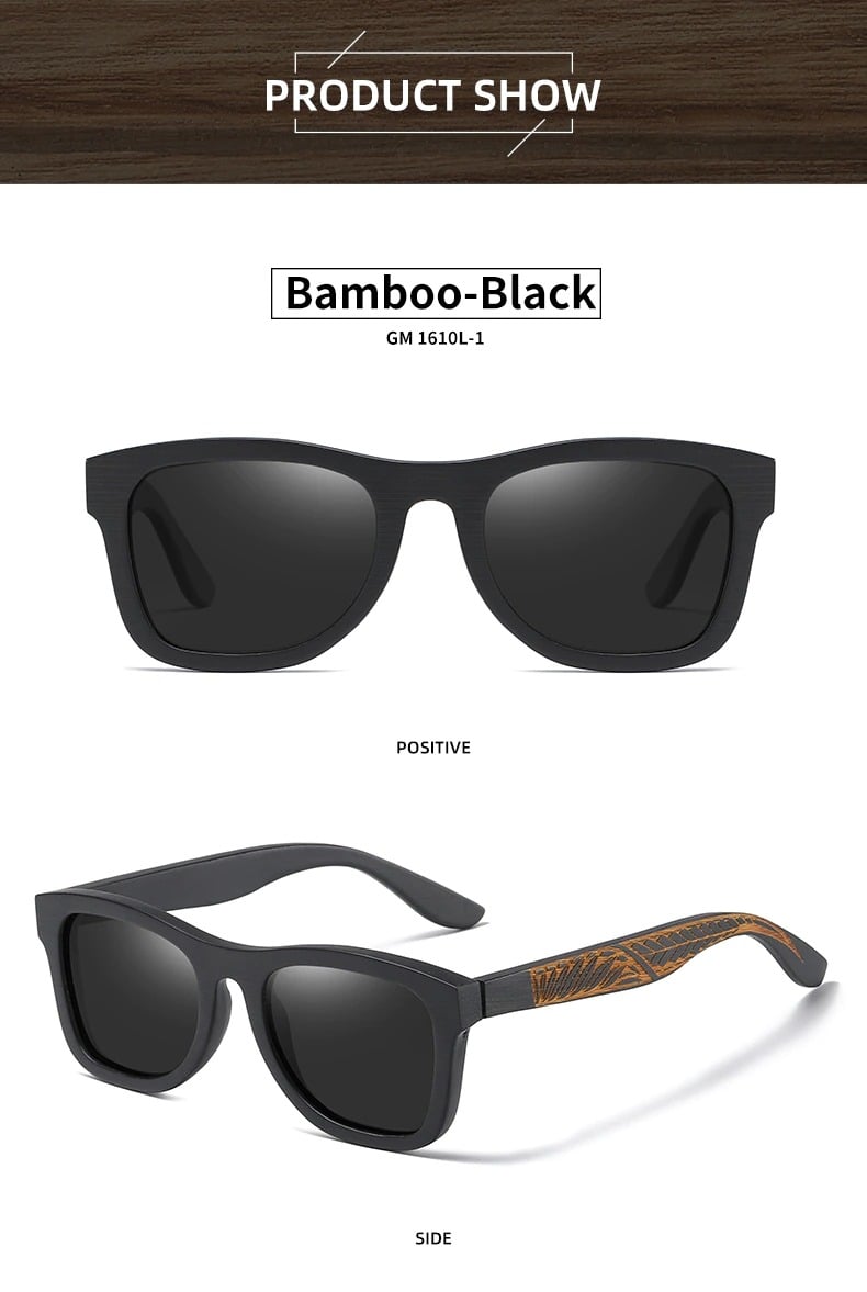 نظارة شمسية من خشب البامبو مزخرفة فاخرة فكل زوج فريد تماما وله خطوط خشبية خاصة به.