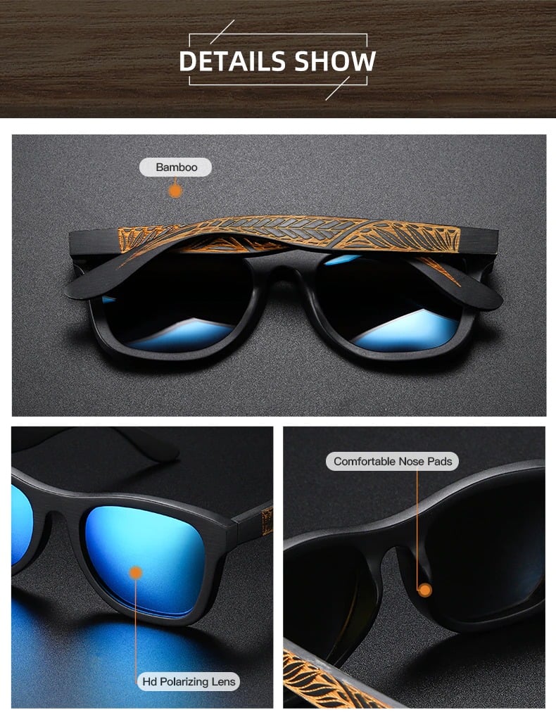 مميزات نظارة شمسية من خشب البامبو مزخرفة فاخرة: