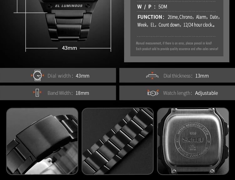 ساعة SKMEI 1335 الرقمية الرياضية المضادة للماء والمصممة خصيصًا للرجال