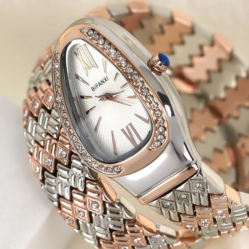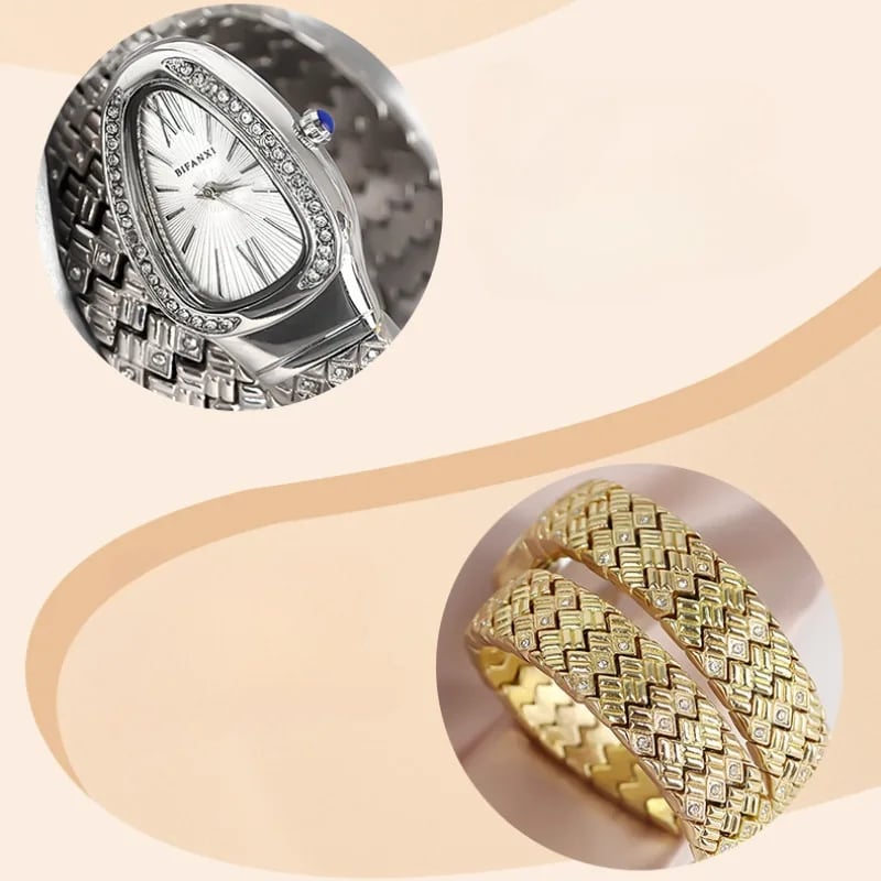 ✨ ساعة نسائية فاخرة بتصميم ساحر مستوحى من نمط الثعبان ✨