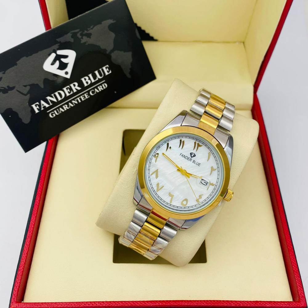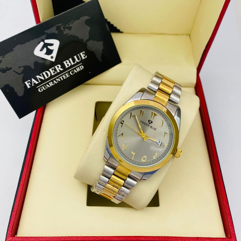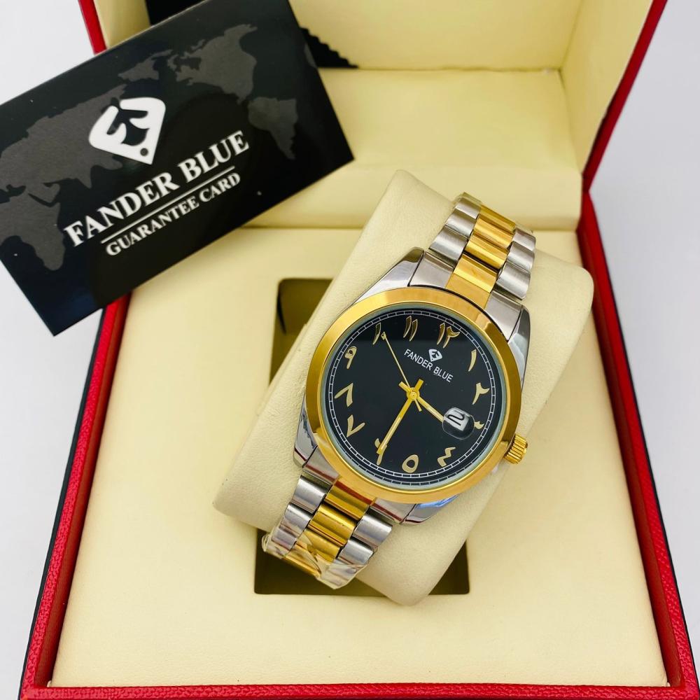 ساعة رسمية فاخرة بأرقام عربية تصميم رولكس رجالي من فاندربلو