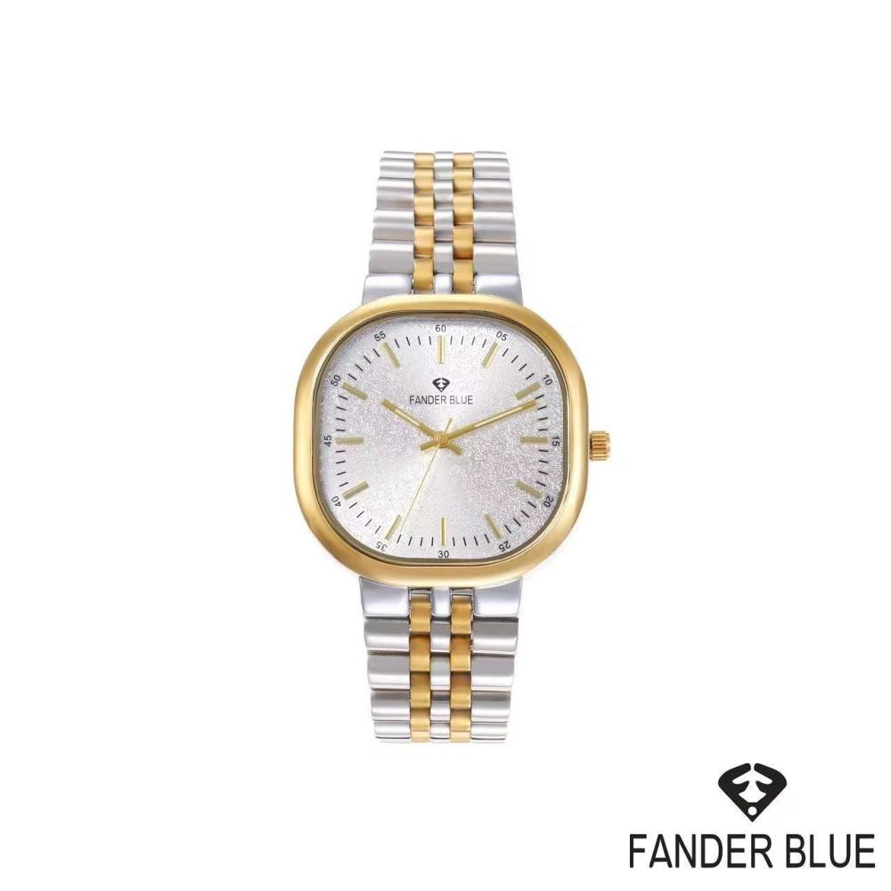 هذه الساعة من "Fander Blue" تتميز بتصميمها الكلاسيكي والأنيق الذي يجمع بين الأداء العملي والمظهر العصري. تأتي الساعة بصندوق معدني مصقول بإتقان، يتميز بشكل مستطيل بزوايا دائرية ناعمة تضيف لمسة فاخرة وفريدة. الميناء الداخلي يتميز بألوان متعددة أنيقة مع تفاصيل دقيقة تشمل علامات ساعات فضية بارزة تتيح قراءة سهلة وواضحة.