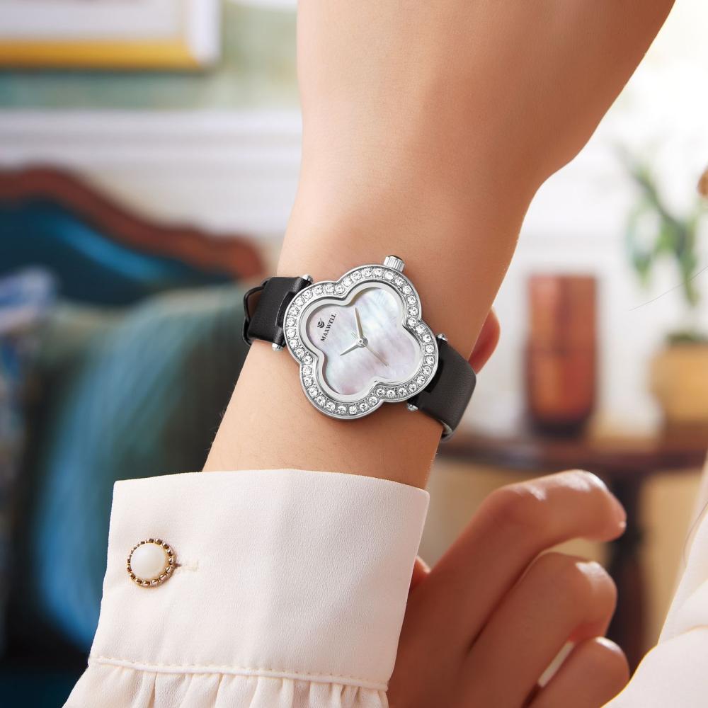 - حركة الساعة: كوارتز تعمل بالبطارية